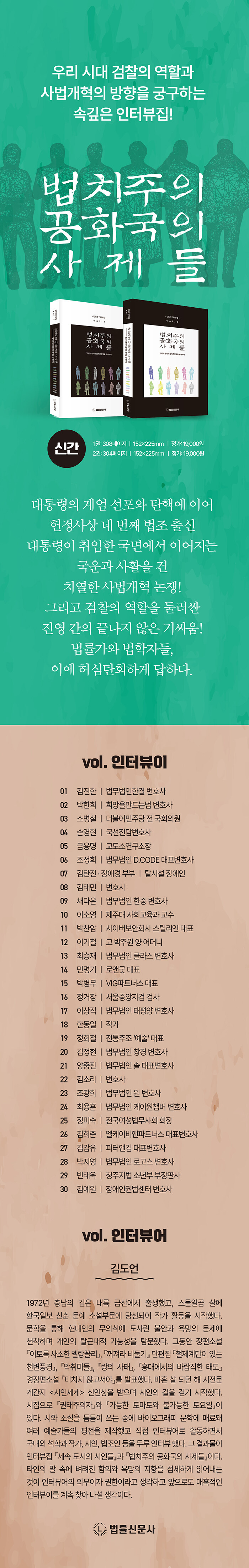 저자는 서문에서 "문학적 자의식과 오만으로 가득했던 내가, 법률가들을 만나고 그들의 이야기를 들으면서 감겨져 있던 눈꺼풀이 조금씩 열리는 느낌을 받았다. 개안(開眼)이었다"고 고백한다. 그는 인터뷰를 통해 법이 배타적인 지식체계가 아니라, 우리의 생활과 생계를 제어하고 때로는 격렬한 영감을 안겨주는 '존재론'임을 깨닫게 되었다고 말한다. 이 책은 법조인에 대한 고정관념을 완전히 깨뜨린다. 목차만 보아도 그 다채로움을 짐작할 수 있다.