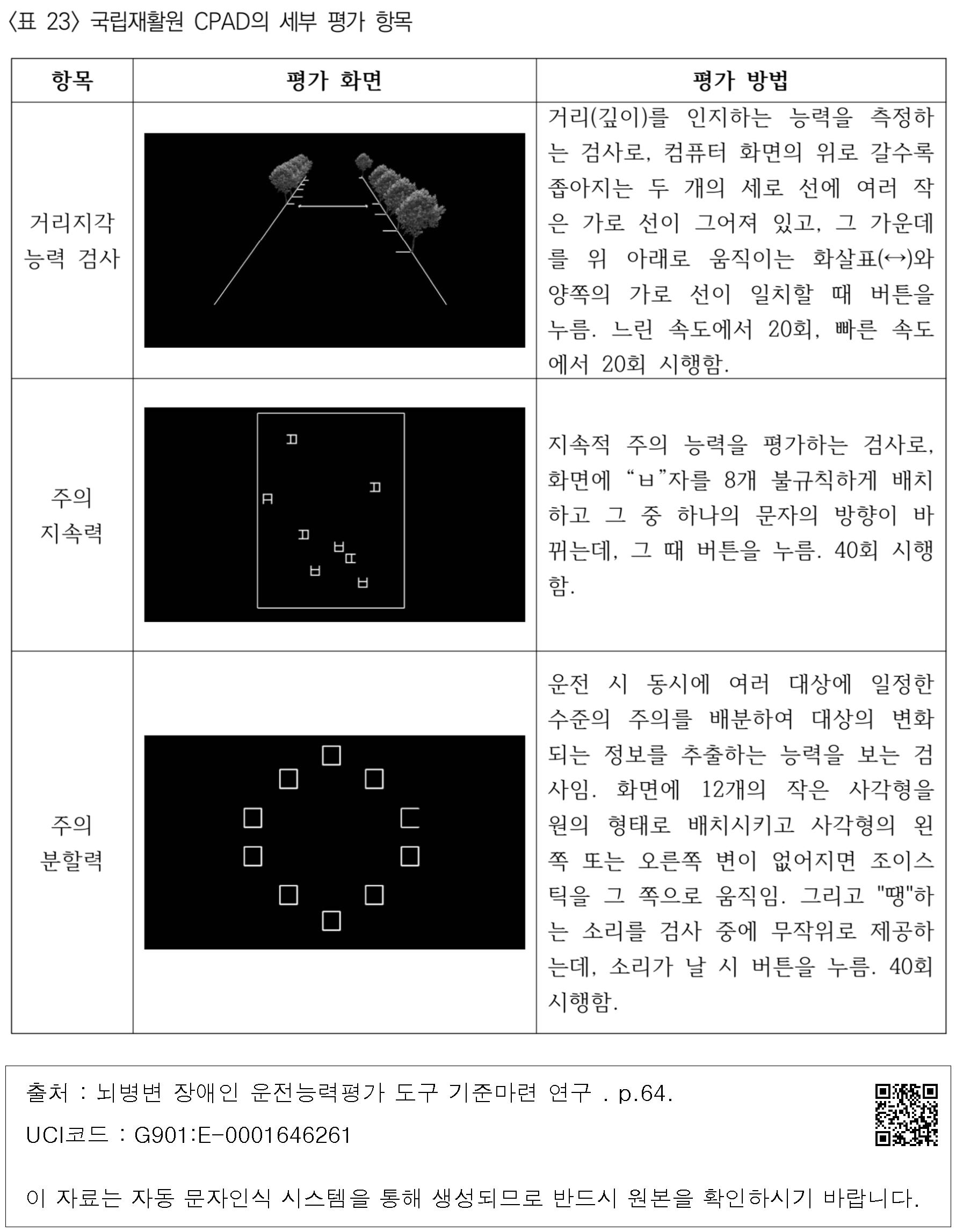 <표 23> 국립재활원 CPAD의 세부 평가 항목-1