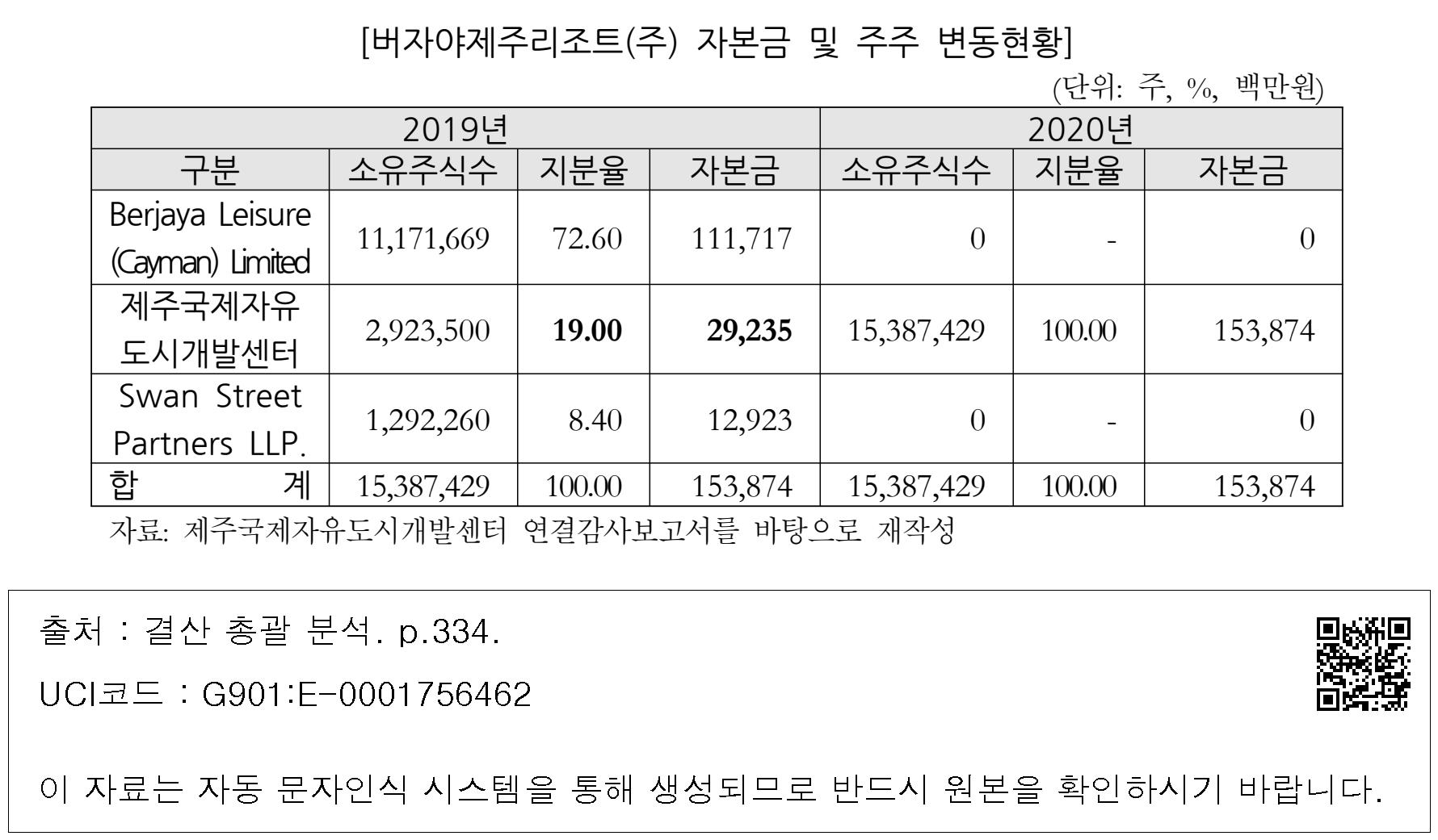 [버자야제주리조트(주) 자본금 및 주주 변동현황]