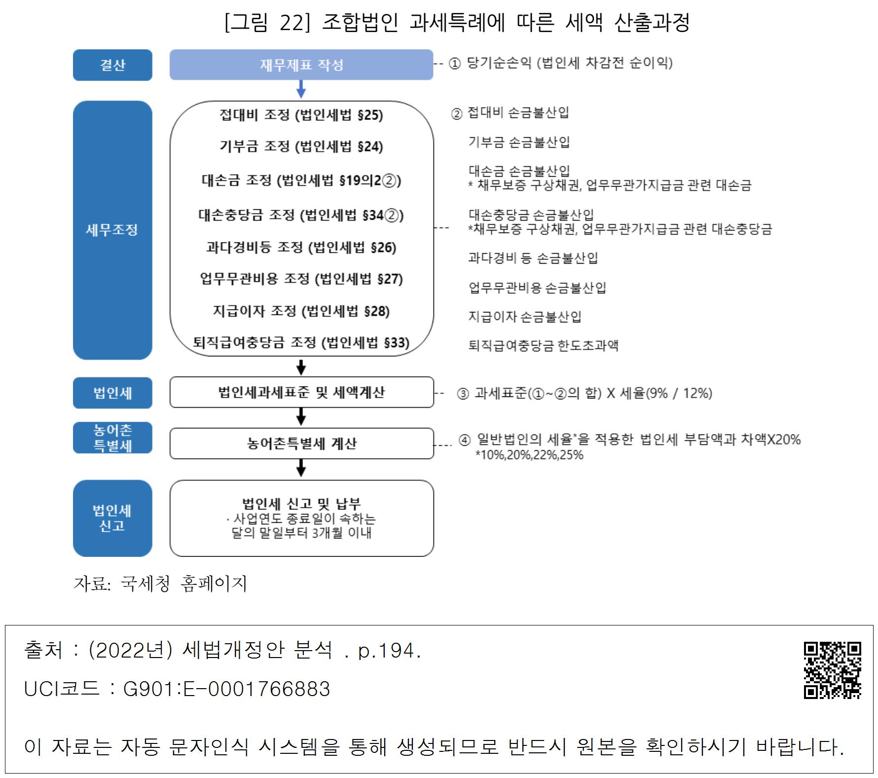 [그림 22] 조합법인 과세특례에 따른 세액 산출과정