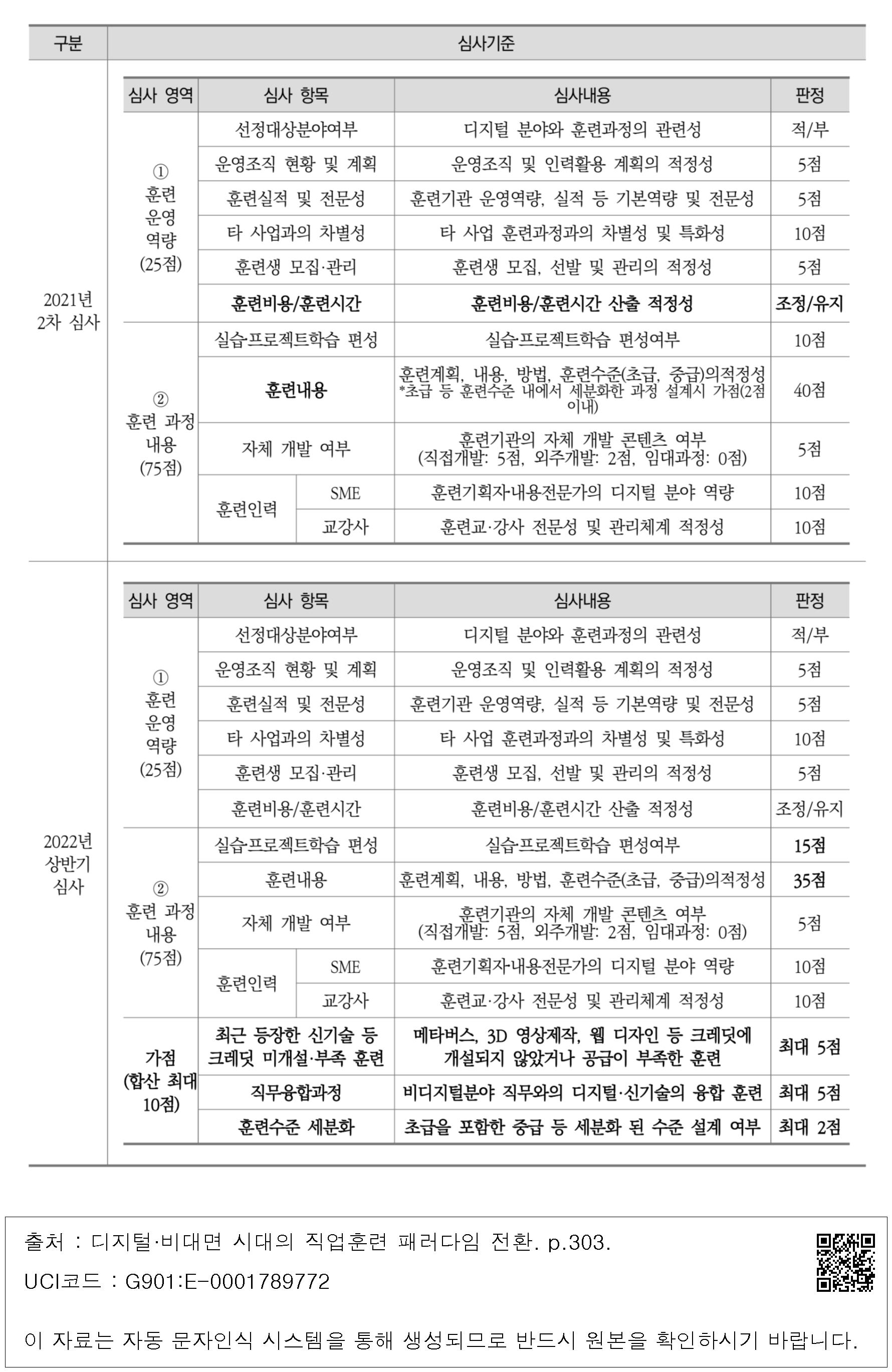 <표 6-16> 디지털 기초역량훈련(K-Digital 크레딧) 과정심사 기준 변경 사항 -2