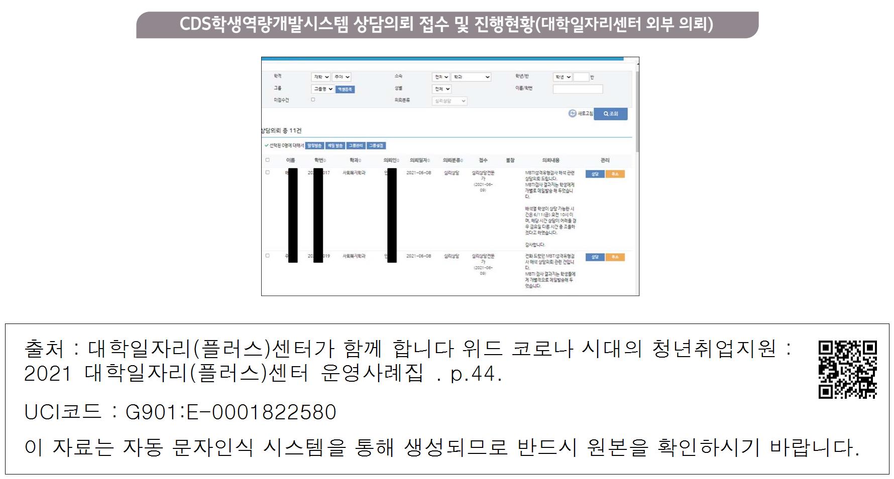 대학일자리(플러스)센터가 함께 합니다 위드 코로나 시대의 청년취업지원 : 2021 대학일자리(플러스)센터 운영사례집 , 고용노동부 청년취업지원과 ; 한국고용정보원 청년정책허브센터, 2021
