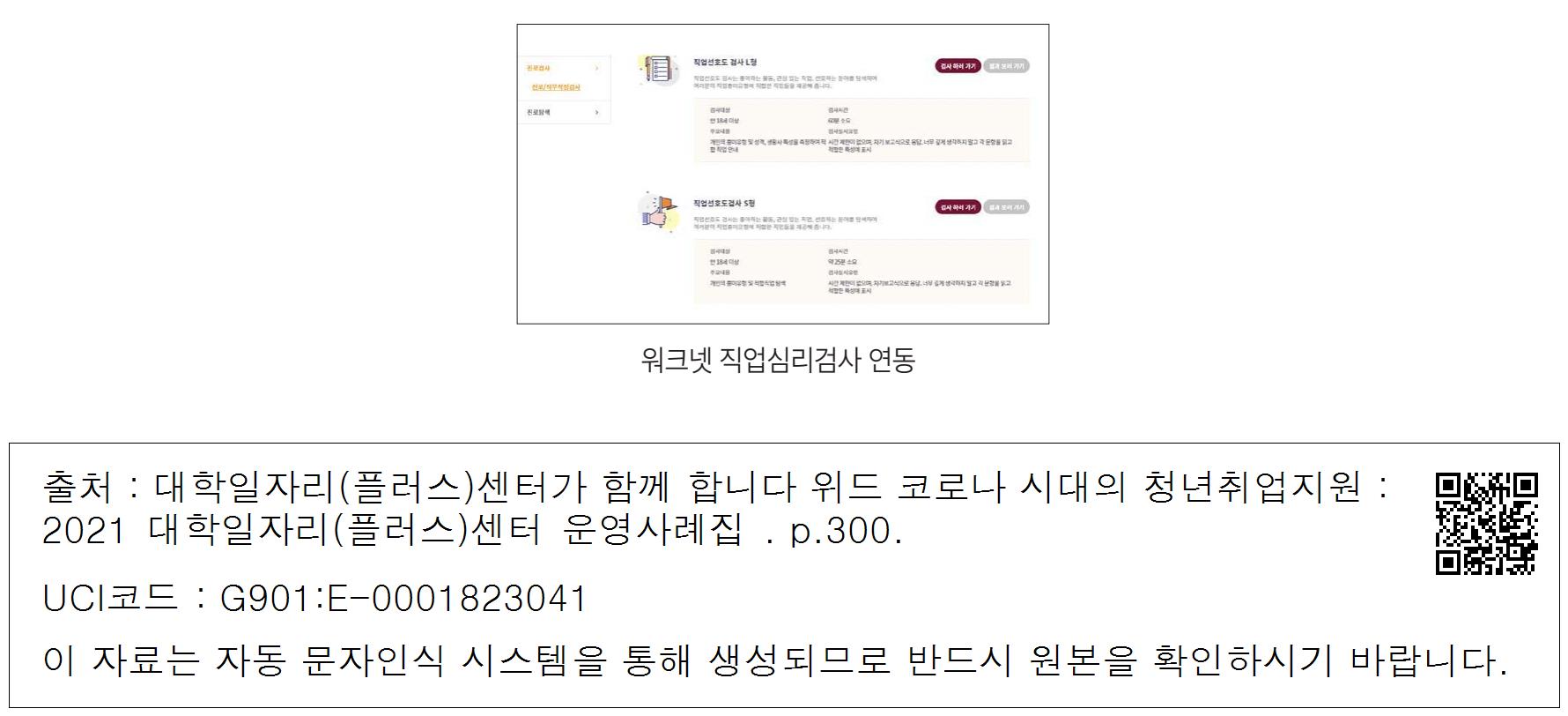대학일자리(플러스)센터가 함께 합니다 위드 코로나 시대의 청년취업지원 : 2021 대학일자리(플러스)센터 운영사례집 , 고용노동부 청년취업지원과 ; 한국고용정보원 청년정책허브센터, 2021