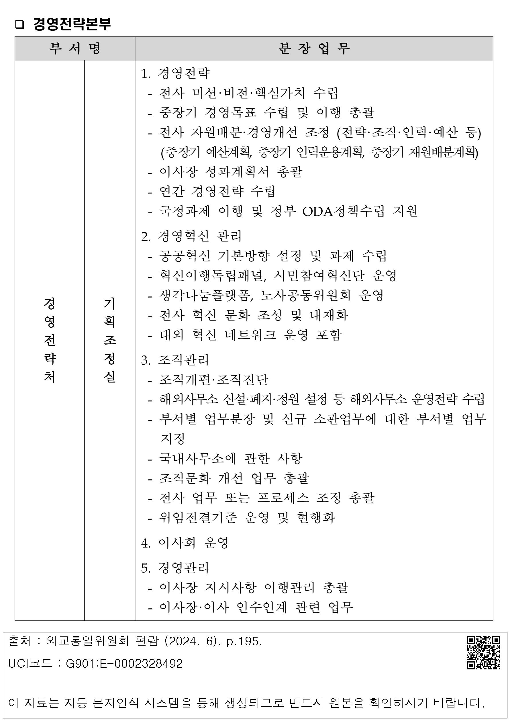 라. 부서별 업무분장 - ❑ 경영전략본부 - 1