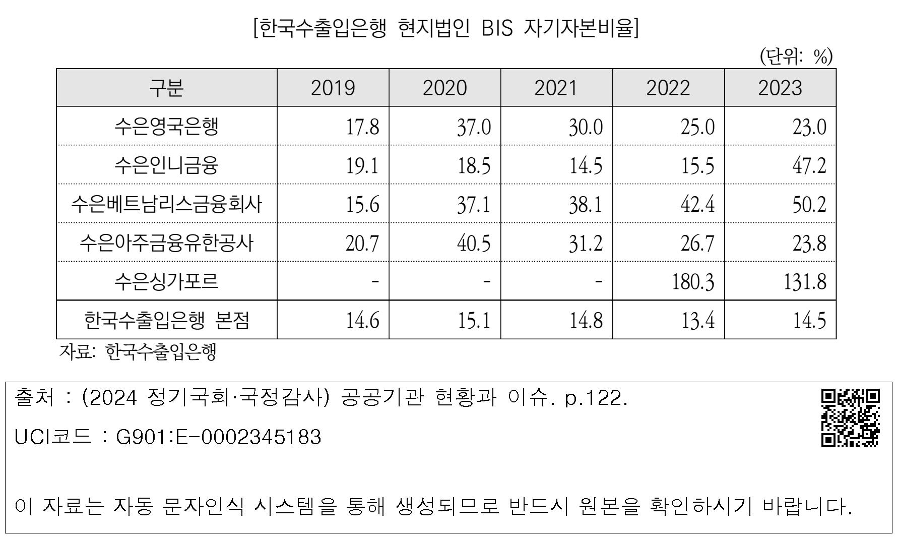 [한국수출입은행 현지법인 BIS 자기자본비율]