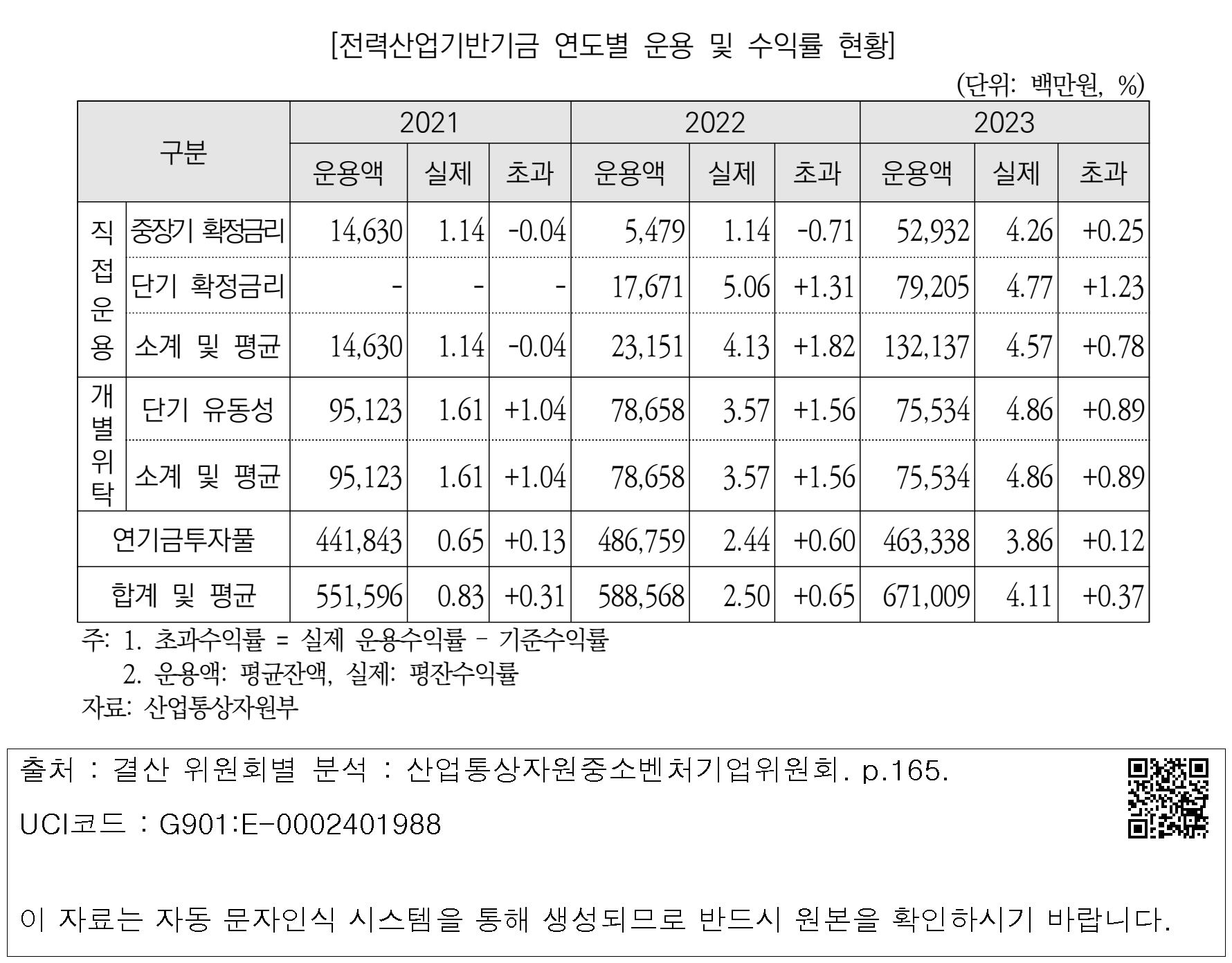 [전력산업기반기금 연도별 운용 및 수익률 현황]