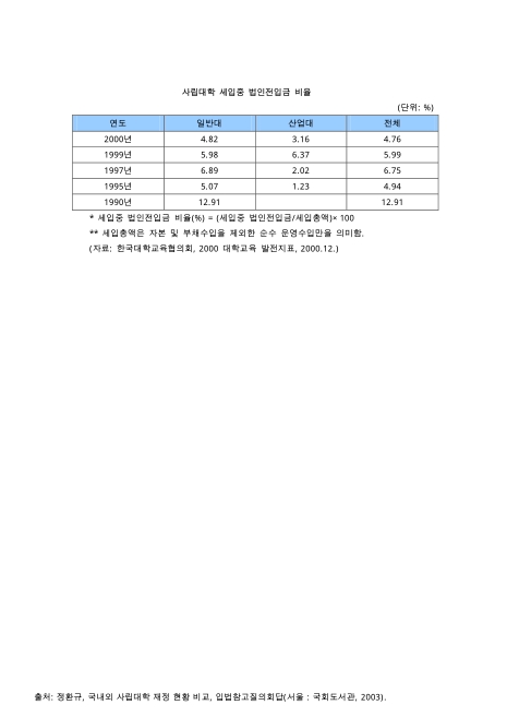 국내외 사립대학 재정 현황 비교, 정환규, 2003