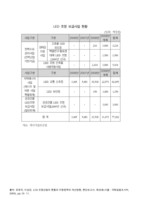 LED 조명산업의 현황과 지원정책의 개선방향, 유재국, 이상은, 2009