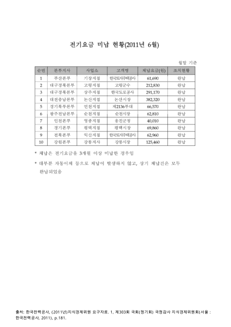 (2011년)지식경제위원 요구자료. 1, 한국전력공사, 2011