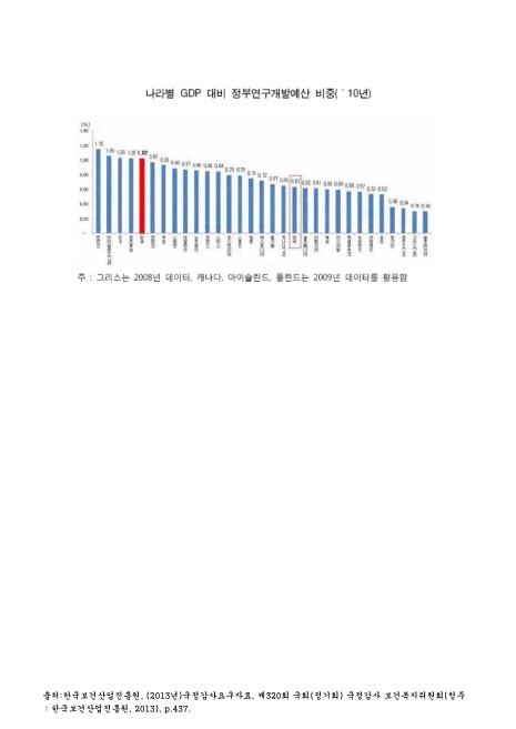 나라별 GDP 대비 정부연구개발예산 비중. 2010. 2010 그래프