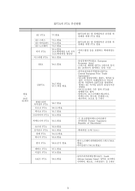 EFTA의 FTA 추진현황. 2015 내용요약표